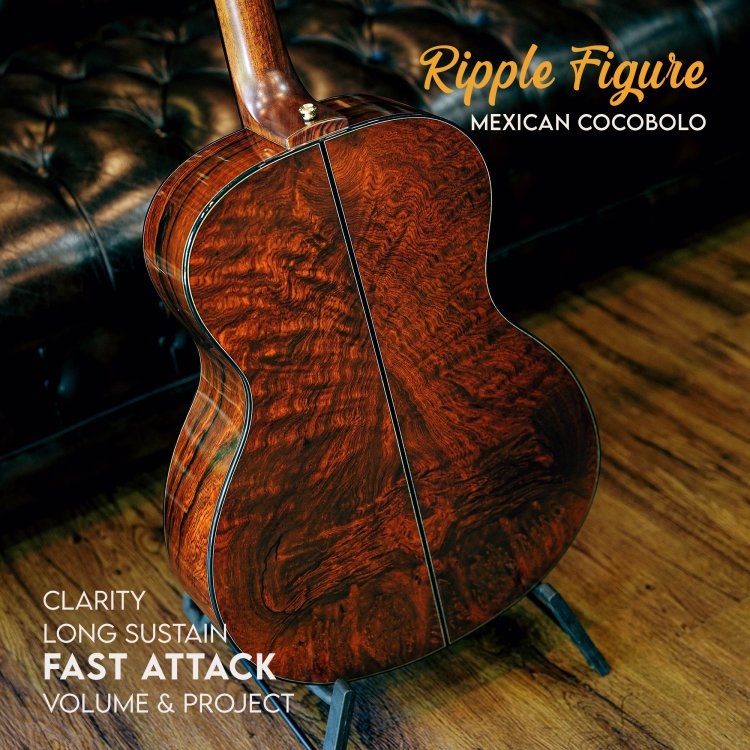 Back/Sides: Solid Mexican Cocobolo Ripple Figure